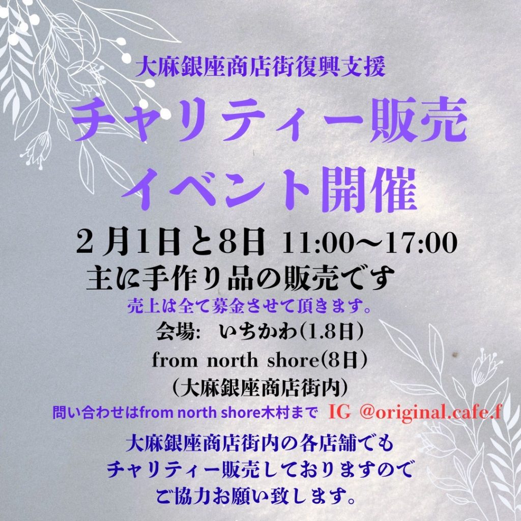 2/8開催の大麻銀座商店街で起きた火災による被害への復興支援チャリティー販売イベントにてトンデンファームも出品いたします。